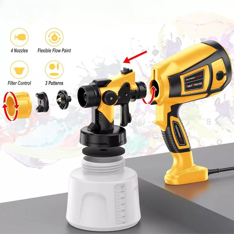 High-Power Electric Spray Gun with 1400ml Capacity, Cleaning Air Nozzle, 4 Nozzles, 3 Spray Patterns, and 3 Modes – Perfect for DIY Projects and Home Improvement.
